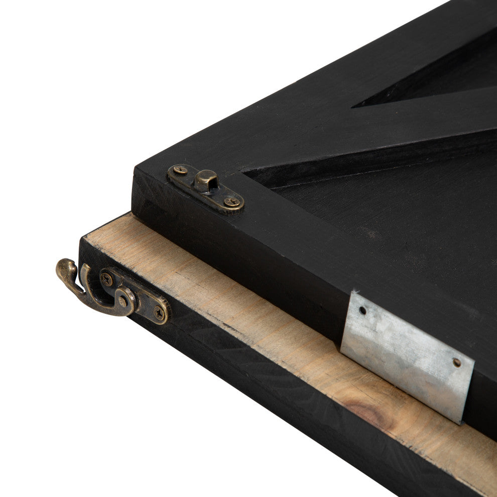 Our handcrafted tree box collars add a rustic, elegant charm to any home or business. The tree boxes not only add beauty and hide the undesirable parts of your tree, but they also prevent kids and pets from getting into the bottom side of your tree. They are stained in black finish. There are 4 panels and each panel has a locking bracket on them.- Handcrafted from sturdy and durable wood with X-shape design, brings you a modern farmhouse Christmas- Simply assembly required. Breaks down into 2 pieces for easy storage after the holiday - Designed to fit any 9ft high Christmas trees or tree stands less than 36"D