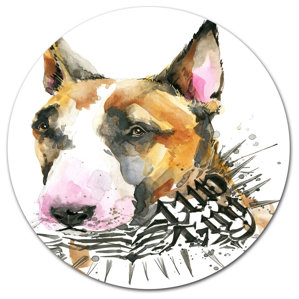 Watercolor Funny Dog Illustration, Animal Art Round Wall Art, 11"