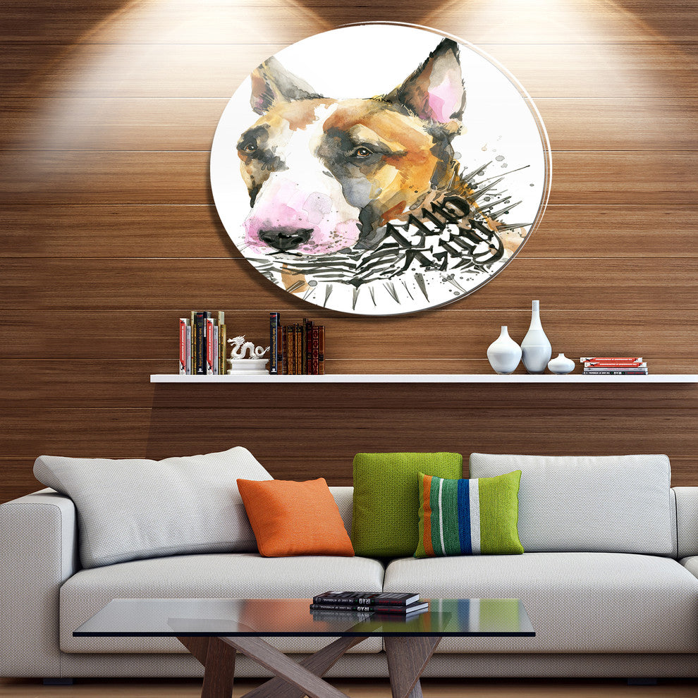 Bring Contemporary Abstraction to your home with this large Circle Metal wall art. This Watercolor Funny Dog Illustration Metal Artwork makes it the focal point of any room or office.