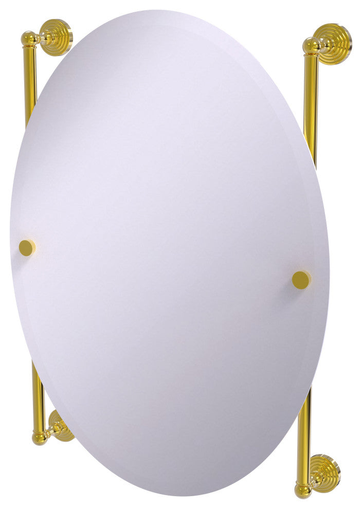 Waverly Place Oval Frameless Rail Mounted Mirror, Polished Brass