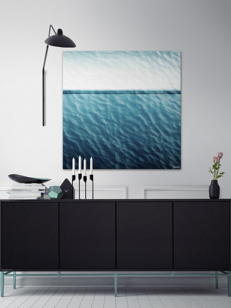 Striking and unique, the "Waves" Print on Canvas by Parvez Taj will bring your walls to life. Printed on canvas, this 18 inch wide by 18 inch tall contemporary artwork will make a statement in any living room, dining room, or bedroom.- Fine art canvas print by Parvez Taj- Professionally hand stretched- Gallery wrapped in sustainable, non-warping wood- Arrives ready to hang- Made in the USA- Includes a certificate of authenticity- Artist signature on the front