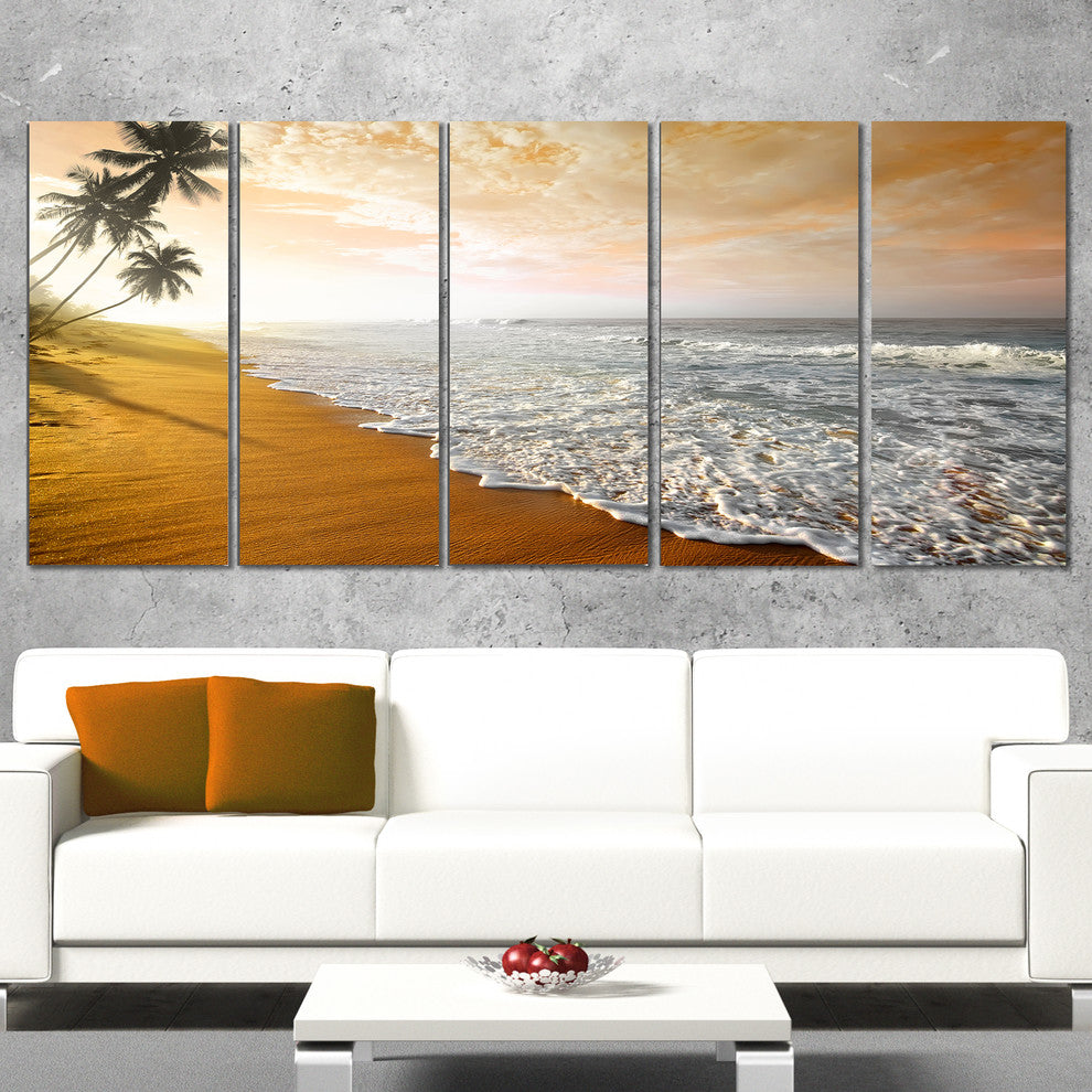 "Wavy Clouds Over Seashore" Seascape Art Canvas, 5 Panels, 60"x28"