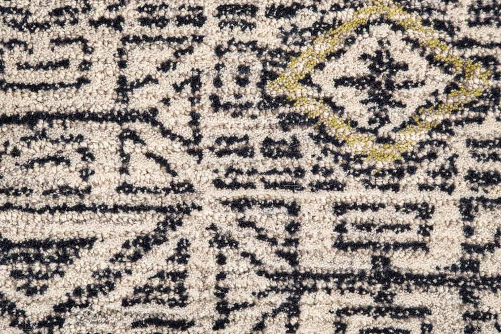 Hand tufted in India, Binda collection combines the best of both traditional and tribal styles. The Melba is 1% premium wool pile delivering on low maintenance while having a high-end appeal. Ideal for creating cool yet contemporary living spaces for the modern nomad, the chevron pattern with graphic black line work makes this rug stand out and complement a wide variety of home d�cor styles.Various colorways are available ranging from pastel blues and golden hues paired alongside bright teal greens and pops of orange.