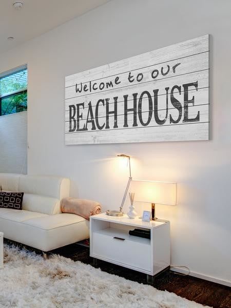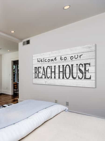 "Welcome to Our Beach" Painting Print on White Wood, 60"x30"