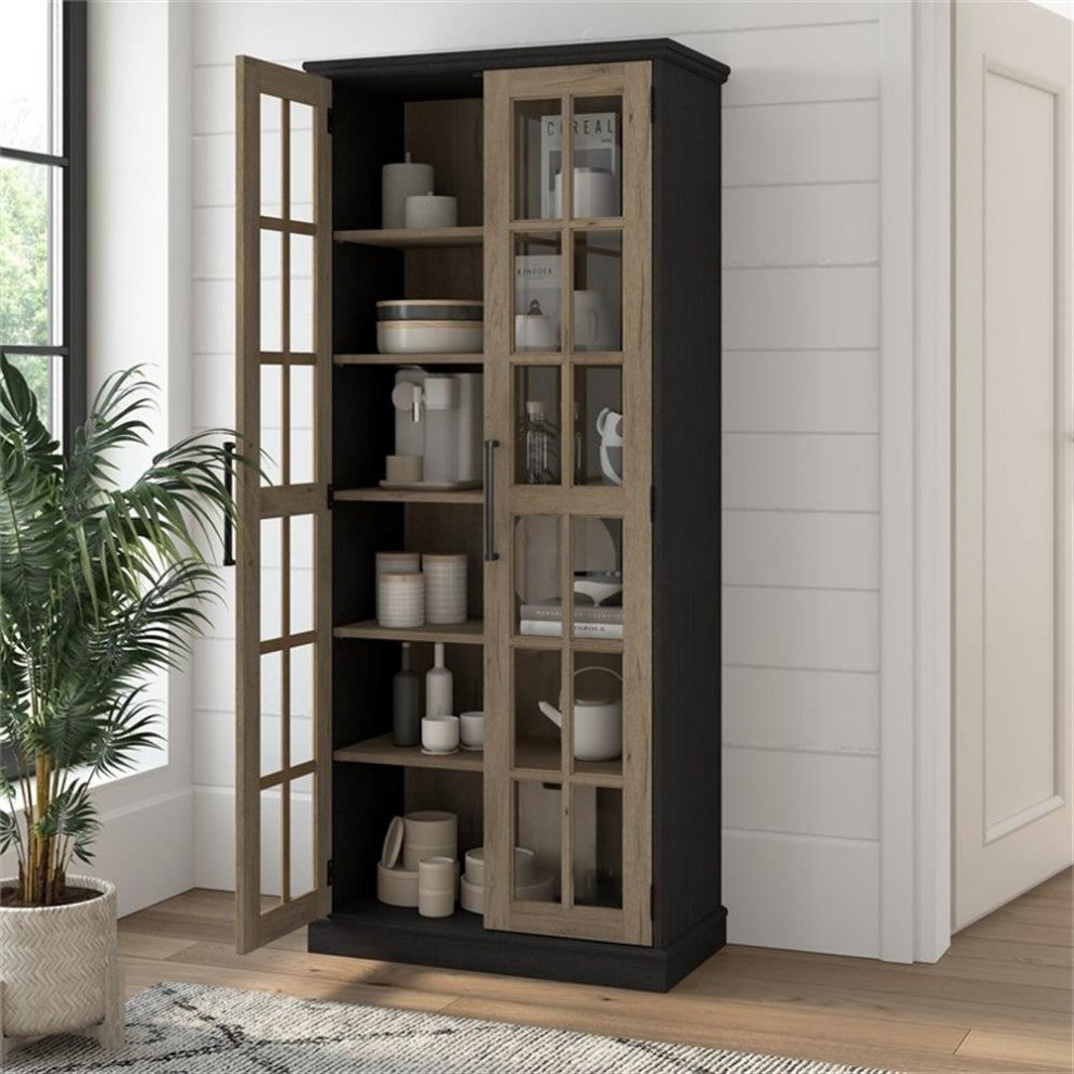 The Bush Furniture Westbrook Curio Cabinet with Glass Doors offers a special place to showcase your most prized possessions with style. A combination of fixed and adjustable shelves support up to 50 pounds each and to accommodate collectibles, trophies, books, decorations, and other trinkets of various shapes and sizes. Lovely windowpane glass doors cover the display cabinet''s shelves to keep your valuables safely tucked away. The cabinet doors are adorned with long matte black handles and exposed barrel hinges that reflect the best elements of modern and farmhouse styling. Wall attachment hardware makes the display cabinet a family-friendly storage solution. This curio cabinet with glass doors has been meticulously tested to meet or exceed industry standards for safety, durability, and performance and is backed by the Bush Furniture 1 Year Manufacturer''s Warranty.Features: • This curio cabinet provides a special place for valuable collectibles, trophies, and decorations in your home • Two shelves are fixed for stability while four shelves can be raised or lowered to accommodate items of various sizes • Each shelf supports up to 50 pounds, so you can store your most treasured items with confidence • Windowpane glass doors conceal materials and give the display cabinet a stylish touch • Wall attachment hardware included for family-friendly safety and security • Accent cabinet adorned with long matte black handles and exposed barrel hinges to reflect the best elements of modern and farmhouse styling • Glass door cabinet''s elegant and practical design makes it a great fit for living rooms, dining rooms, home offices and any other living space • Bush Furniture''s commitment to safety includes rigorous testing that meets or exceeds industry standards • Curio cabinet with glass doors is backed by a 1 Year Manufacturer''s Warranty • Coordinating items in the Westbrook Collection include computer desks, file and storage cabinets, media consoles, and moreSpecifications: • Product Color: Vintage Black/Restored Tan Hickory • Product Weight: 137.75