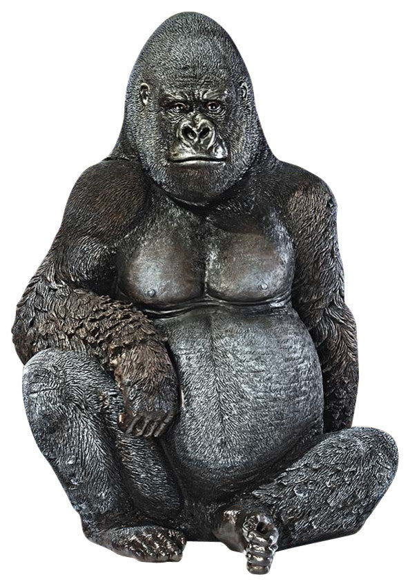 Our life-size, black-back gorilla statue is so realistically sculpted that he''s likely to be mistaken for one of his living, breathing, great ape namesakes. Found in Africa''s dense jungles, gorillas are fearless combatants. One swing of this primate''s mighty arm can stun a lion or kill a man. At a full yard tall, our muscular black-back gorilla statue is realistically sculpted and cast in designer resin, each lifelike detail finished with the utmost authenticity. This large-scale, display-quality sculpture transforms any home, garden, restaurant or hotel into something truly magnificent! 33.5"Wx27.5"Dx45"H. 39 lbs.