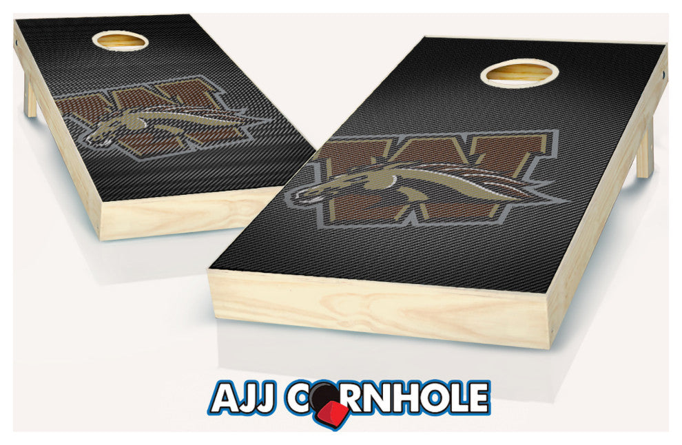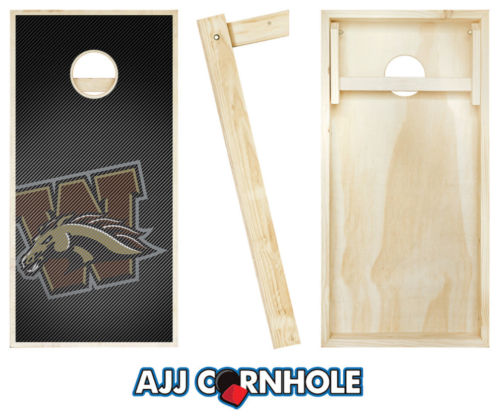 Officially Licensed Western Michigan Cornhole Set. Show off your pride at your next cookout or tailgate with our signature slanted design. Cornhole Set comes ready to play right out of the box, no assembly required! Set comes complete with 2 wooden game boards and 8 officially licensed Western Michigan bags! Officially Licensed Collegiate ProductRegulation Size (2 Feet x 4 Feet)Tournament Grade ConstructionFolding Legs For Easy StorageAll Wood Construction Set Includes 8 Bags. All sets are made using a premium 2x4 frame and 1/2" sanded plywood playing surface. Each set has folding 2x4 legs secured with galvanized bolts.