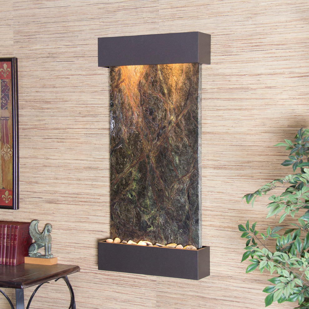The beautiful Whispering Creek Water Fountain is not only a flowing piece of artwork, but also extends its soothing effect on all who hear it. This smaller vertical wall water fountain is easy to install in any room in your home today. It comes in a variety of metal trim and water surface options to easily match any decor. Start relaxing in your home with your own indoor water fountain now.