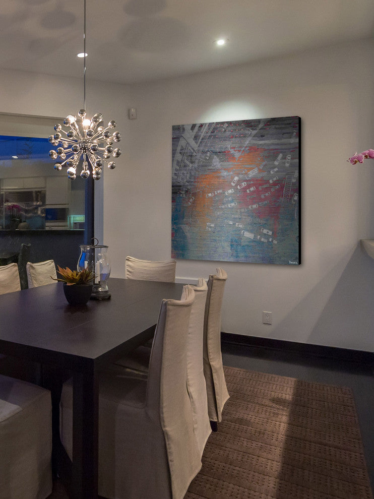 Striking and unique, the White Car Jam" Painting Print On Brushed Aluminum by Parvez Taj will bring your walls to life. Printed on brushed aluminum, this 24 inch wide by 24 inch tall contemporary artwork will make a statement in any living room, dining room, or bedroom.- Fine art UV ink print on brushed aluminum by Parvez Taj- the aluminum pops the colors and creates an iridescent shimmer - which gives depth to a room- Arrives ready to hang- Includes a certificate of authenticity- Artist signature on the front