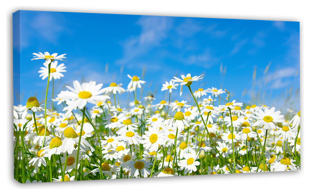 White Daisies under Bright Blue Sky, Floral Canvas Art Print, 32"x16"
