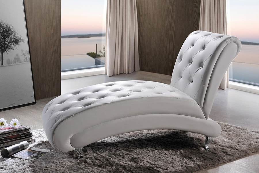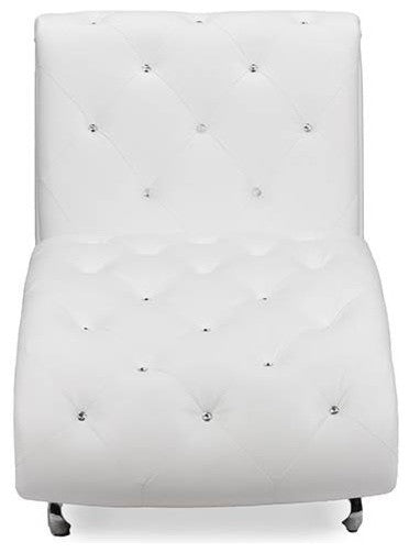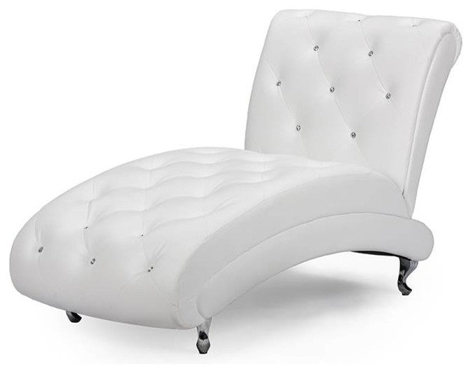White Faux Leather Upholstered Crystal Button Tufted Chaise Lounge