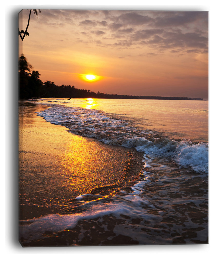 "White Foaming Waves At Sunset" Modern Beach Canvas Art Print, 30"x40"