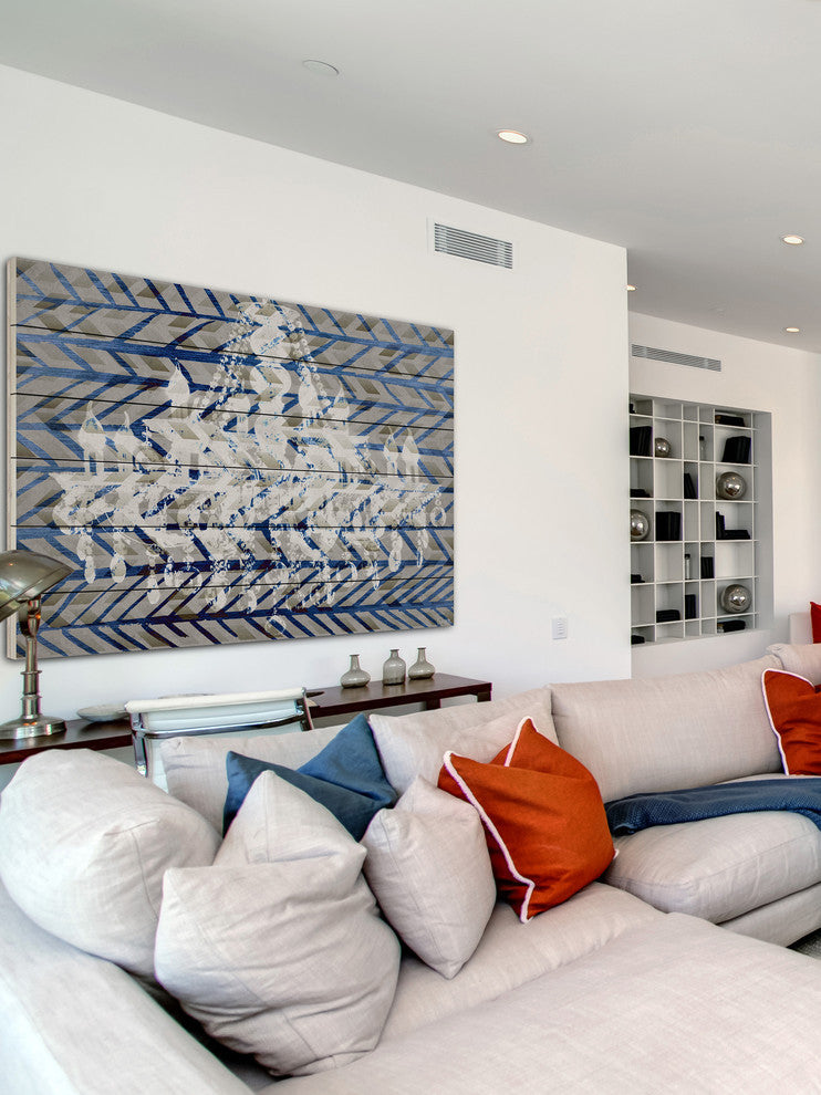 Striking and unique, the "White Light" Print on White Wood by Parvez Taj will bring your walls to life. Printed on white wood, this 60 inch wide by 40 inch tall contemporary artwork will make a statement in any living room, dining room, or bedroom.- Fine art UV ink print on white wood by Parvez Taj- wood pieces are hand-selected by Fine craftsmen for printing- Arrives ready to hang- Includes a certificate of authenticity- Artist signature on the front