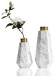White Modern Ceramic Flower Vase, Marble Texture with Gold Detailing