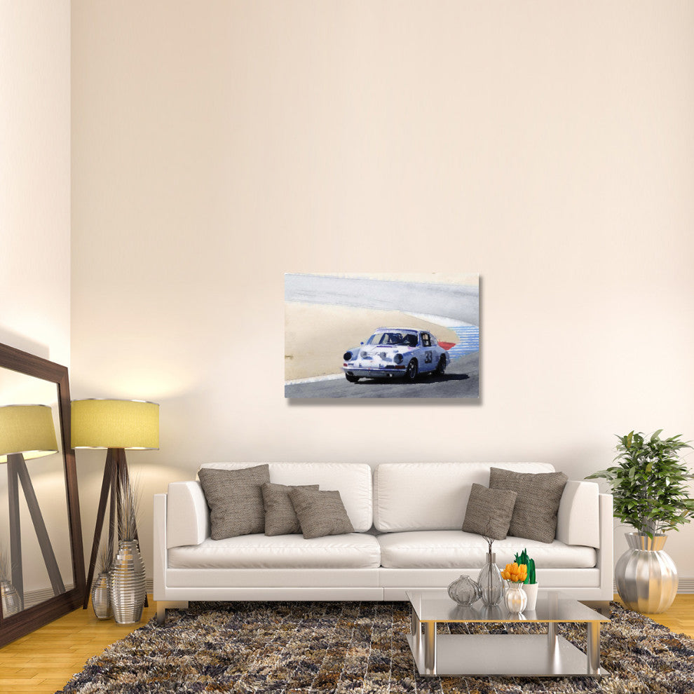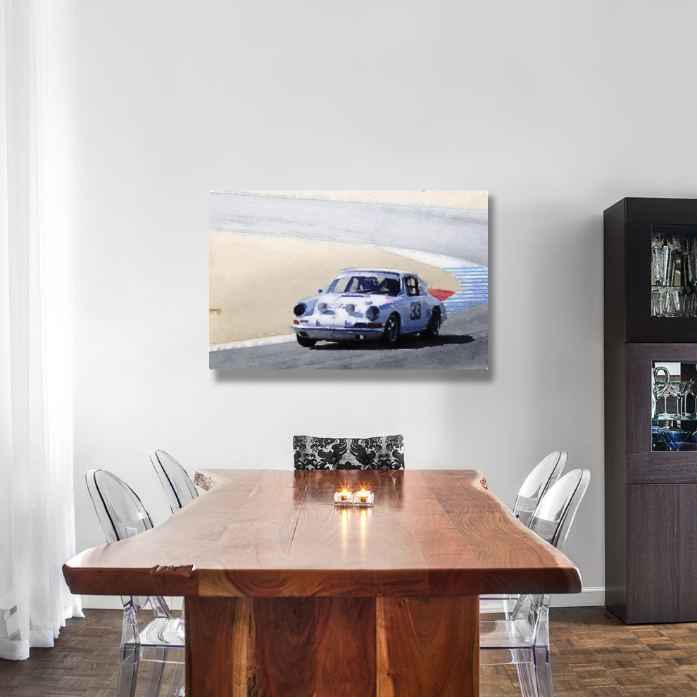 "White Porsche 911 in Monterey Watercolor" Fine Art Print