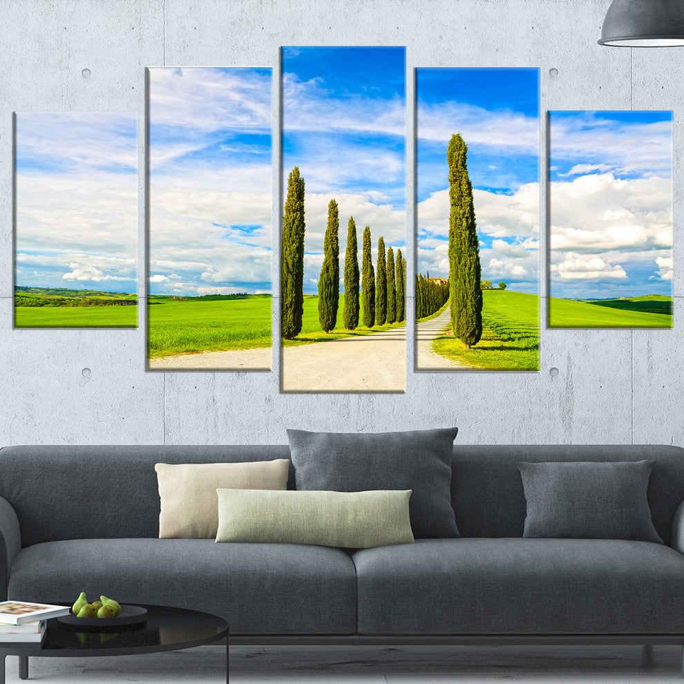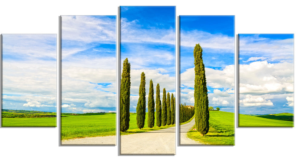 "White Road Through Cypress Trees" Landscape Wall Art Print, 5 Panels, 60"x32"