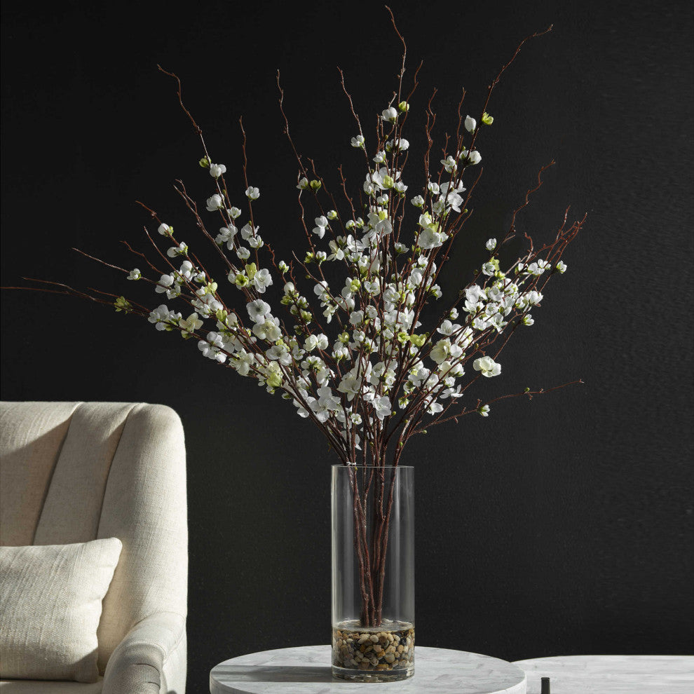 - Color/Finish: Effortlessly Arranged As If Freshly Harvested, These Quince Branches Exemplify The True Characteristics Of Live Blooms. Varying In Stages Of Openness, Cream Buds Are Accented By Natural Rocks In A Clear Glass Vase.
