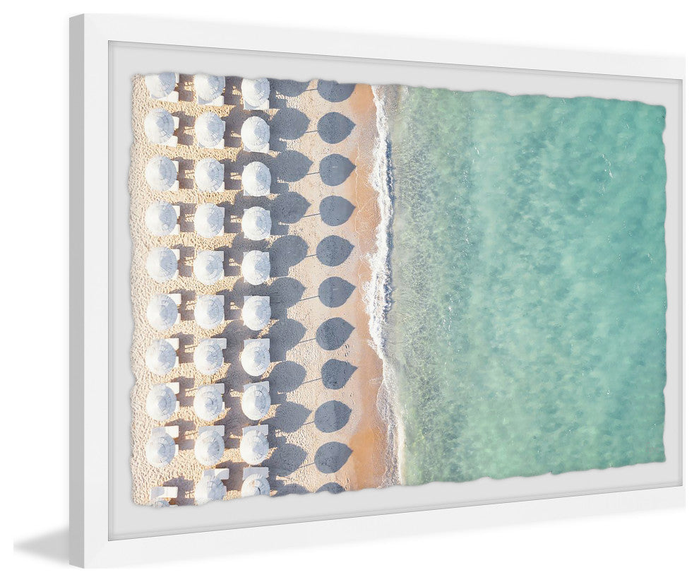 Sure to brighten any room, this photographic print features a visually pleasing take of white umbrellas on the empty beach. Proudly printed in the USA, this piece is printed on high quality archive paper and professionally hand-framed. With wall-mounting hooks included, this artful accent is ready to hang up as soon as it reaches your front door.
