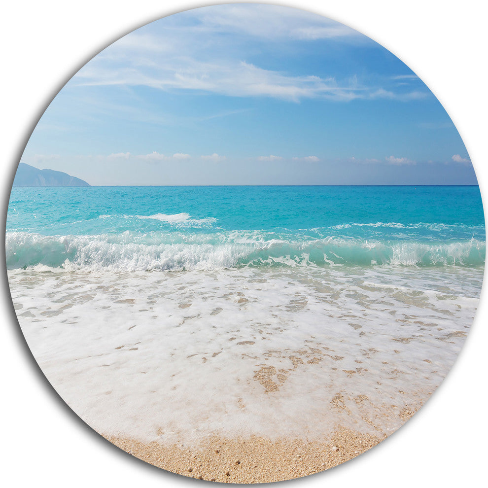 White Waves Kissing Beach Sand, Seashore Disc Metal Artwork, 36"