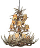 Real Antler Whitetail Tall Spruce Chandelier (36-37"D x 41-43"H), 16 Light Sockets, 6 feet of rustic bronze chain. With Parchment Shades.Handmade in North America using top quality naturally shed real antlers. Sockets are made to resemble real antler, each socket rated up to 60 Watts. Comes balanced and ready to hang. Frosted Bent Tip Candelabra Bulbs included. Certified in U.S & Canada (CSA listed to comply with UL 1598)