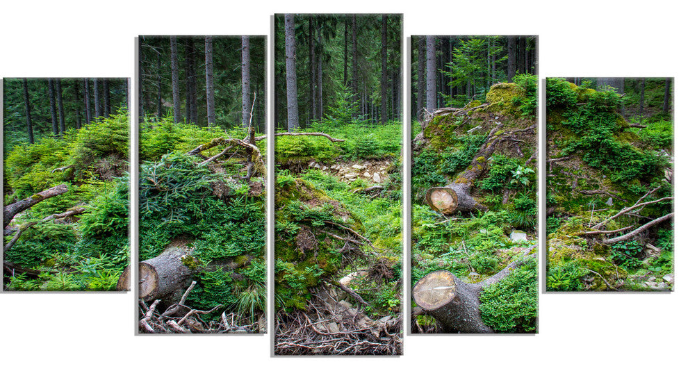 "Wild Deep Forest Rocks and Hills" Landscape Art Print Canvas, 5 Panels, 60"x32"