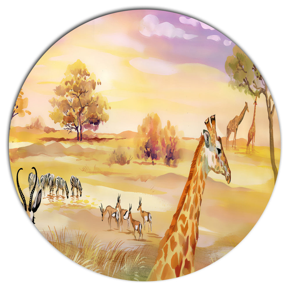 Bring Contemporary Abstraction to your home with this large Circle Metal wall art. This Wildlife of Savannah Illustration Metal Artwork makes it the focal point of any room or office.