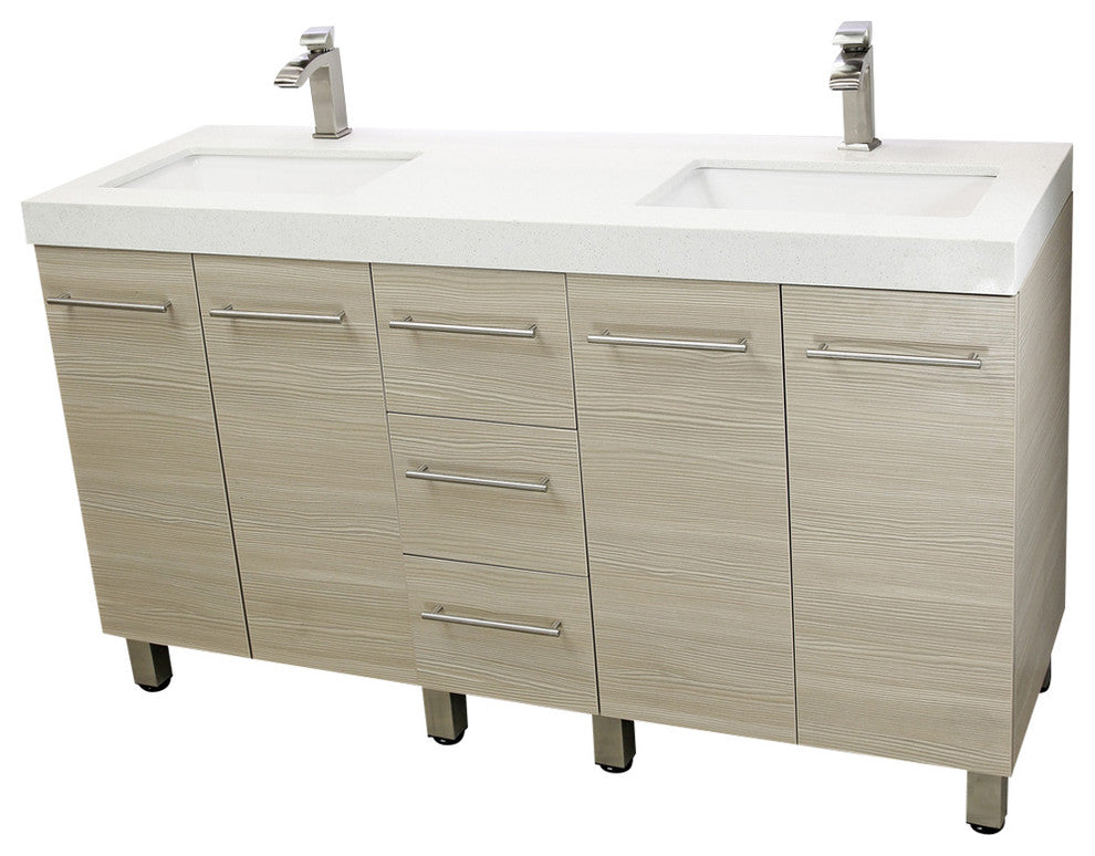 Windbay 60" Free Standing Double Vanity, Tan, White Quartz Under Mount Counter T