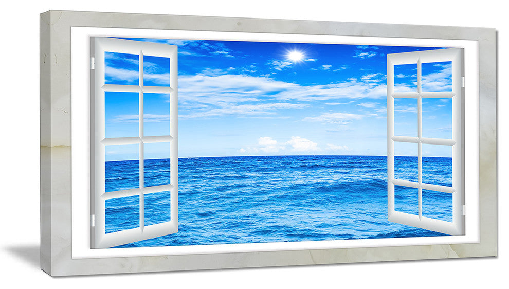 "Window Open To Blue Wavy Ocean" Seashore Wall Art, 1 Panel, 60"x28"