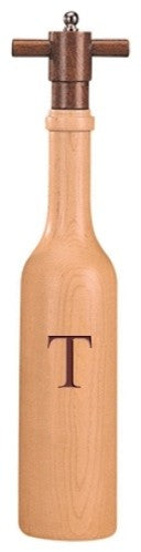 Wine Bottle Maple Wood Pepper Grinder, Custom Personalized Initial,  "T"