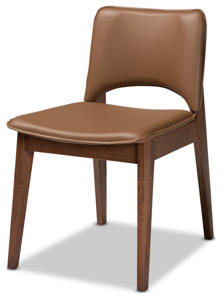 Dine in mid-century style with the Winfield dining set. Made in Malaysia, the Winfield includes six dining chairs and one table constructed from walnut brown finished wood that exudes visual warmth. Each seat is padded with plush foam and upholstered in smooth faux leather for superb comfort with every meal. Requiring assembly, the large, rectangular tabletop of the Winfield provides plenty of elbow room for each member at the table. Built for casual meals and formal dinners alike, the Winfield dining set is a terrific addition to any space.