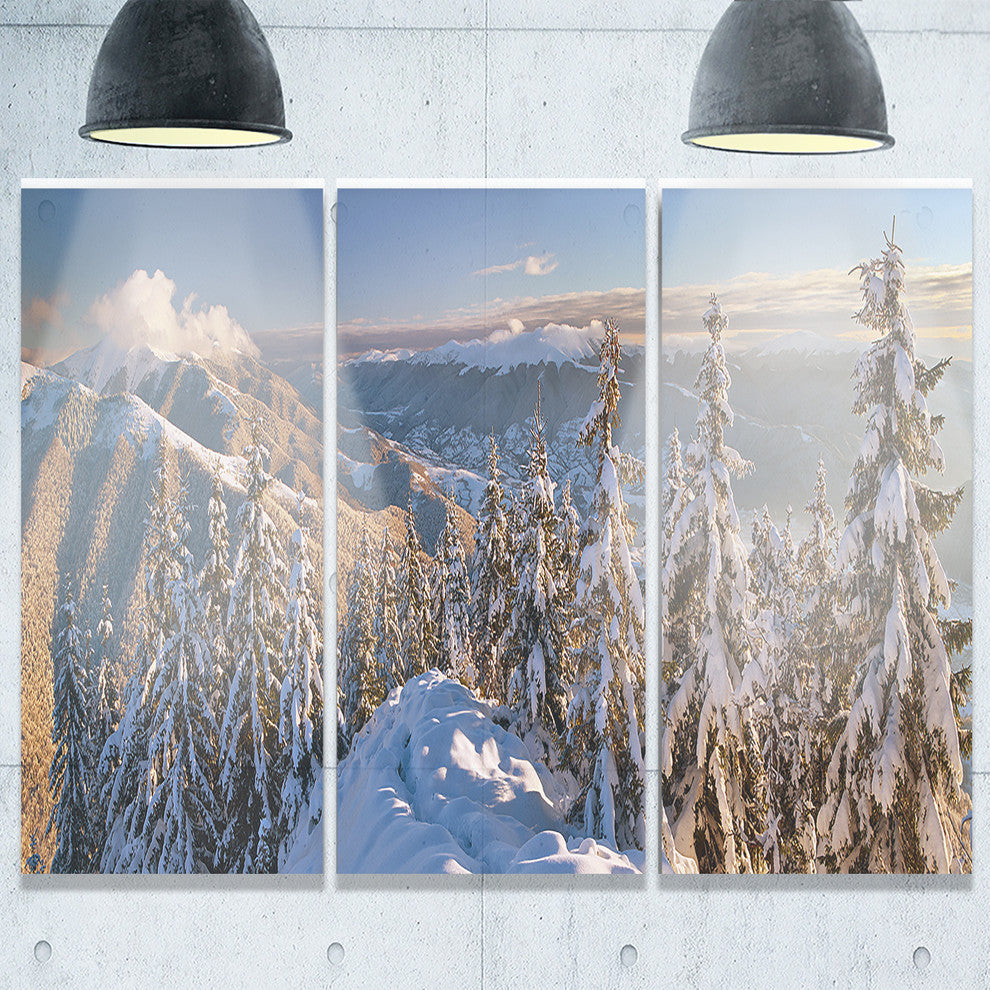 "Winter Carpathians Panoramic View" Metal Wall Art, 3 Panels, 36"x28"