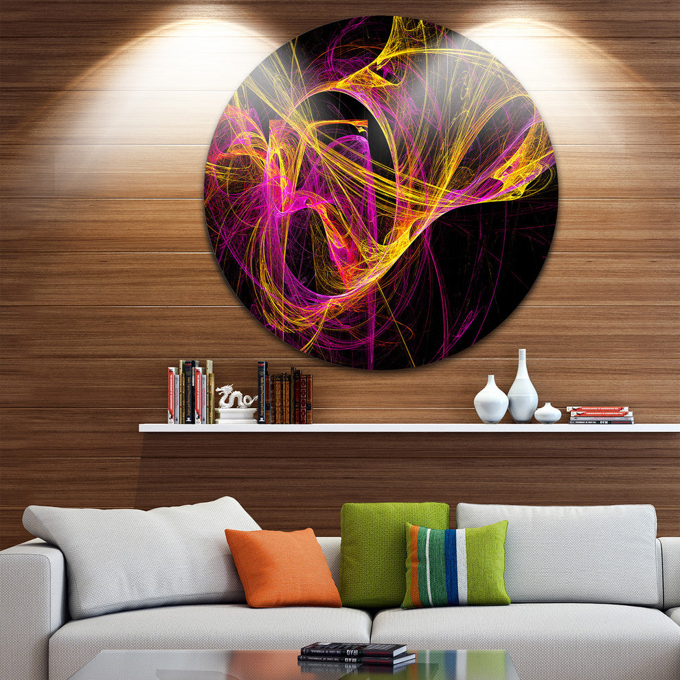 Bring Contemporary Abstraction to your home with this large Circle Metal wall art. This Wisps of Smoke Yellow in Black Metal Artwork makes it the focal point of any room or office.