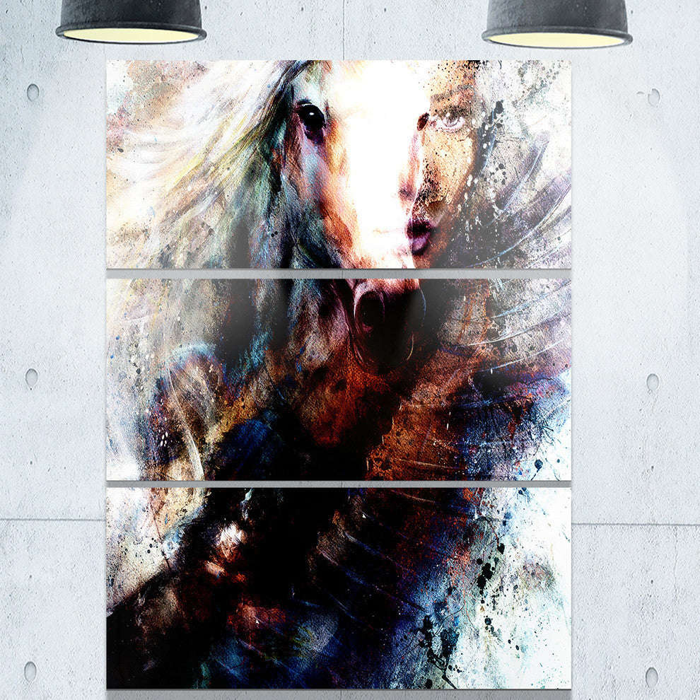 "Woman and Horse With Flying Eagle" Collage Metal Wall Art, 3 Panels, 28"x36"