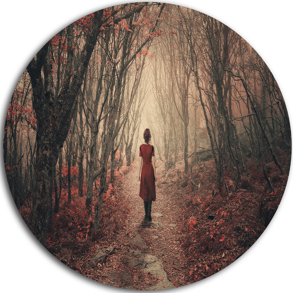 Woman In Frosty Forest, Landscape Photo Disc Metal Wall Art, 11"
