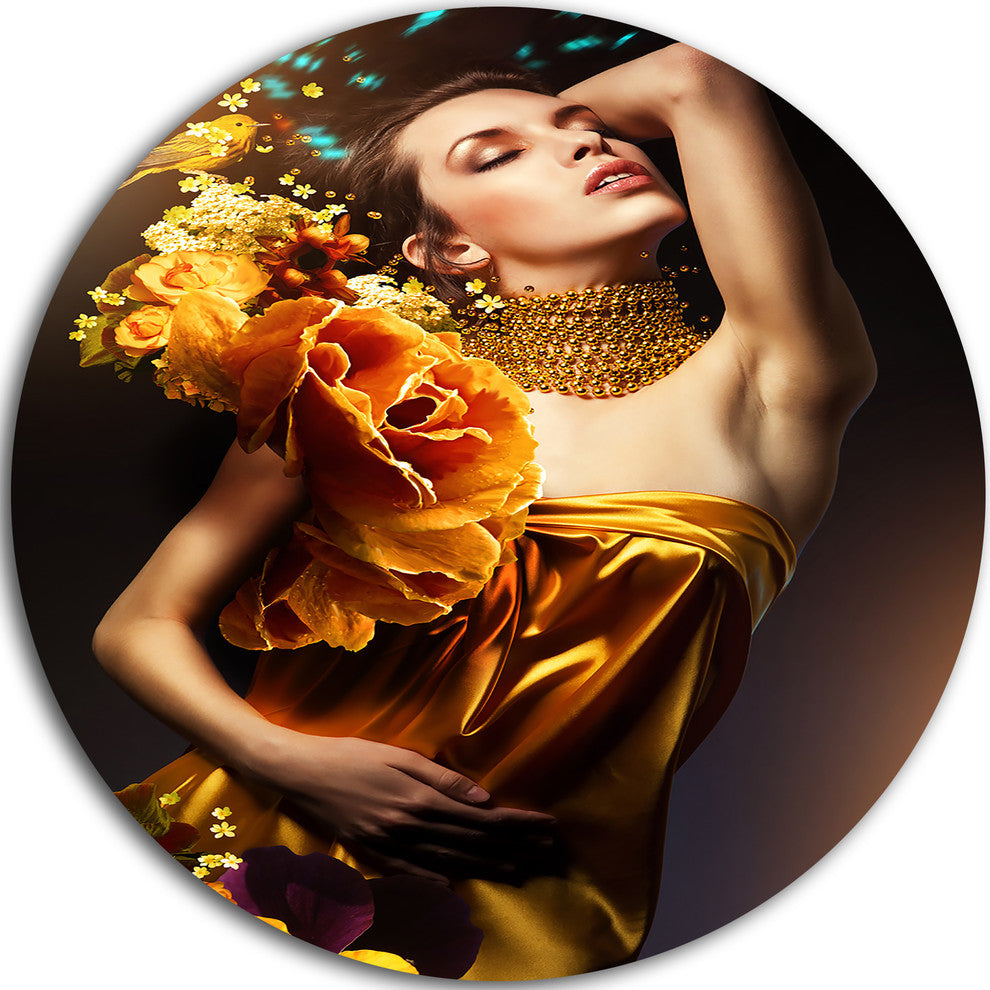 Woman In Yellow Dress, Digital Art Portrait Round Wall Art, 23"