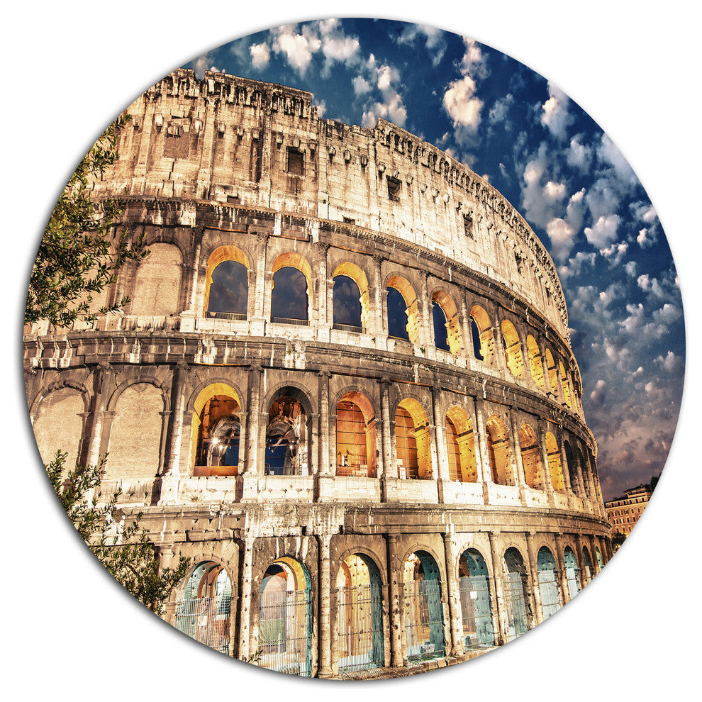 Wonderful Coliseum At Dusk, Landscape Round Metal Wall Art, 11"