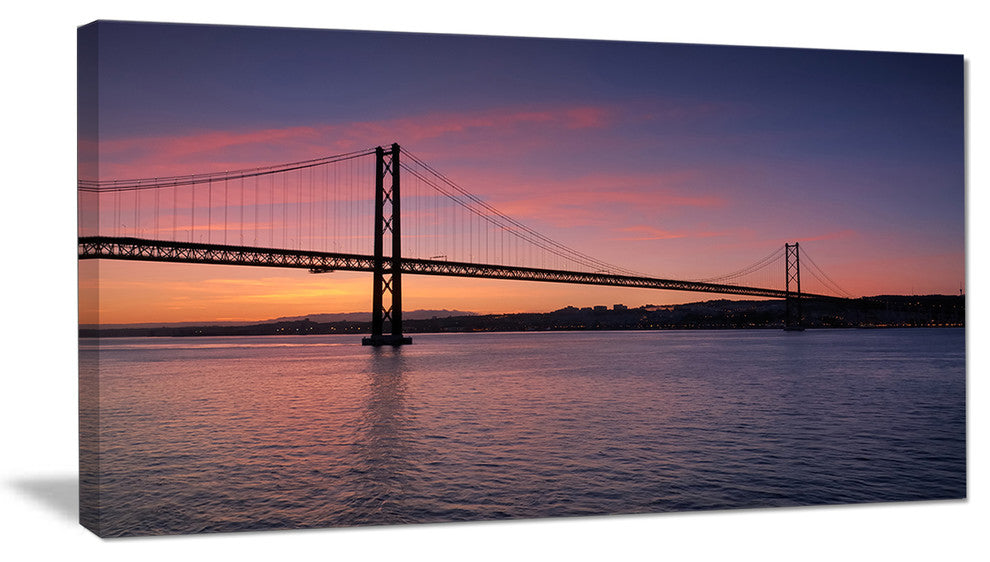 "Wonderful View of Lisbon Bridge" Sea Pier and Bridge Wall Art Canvas, 40"x20"