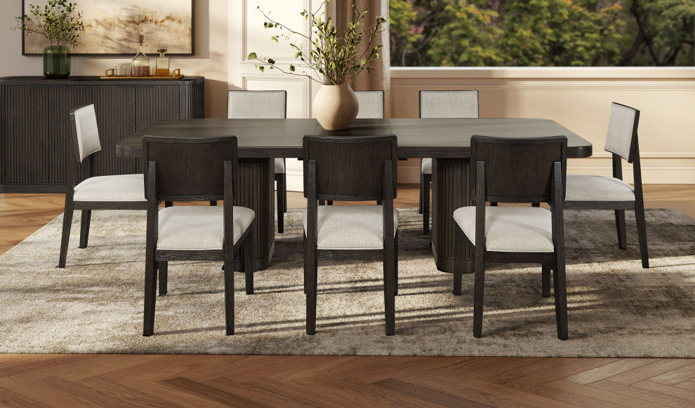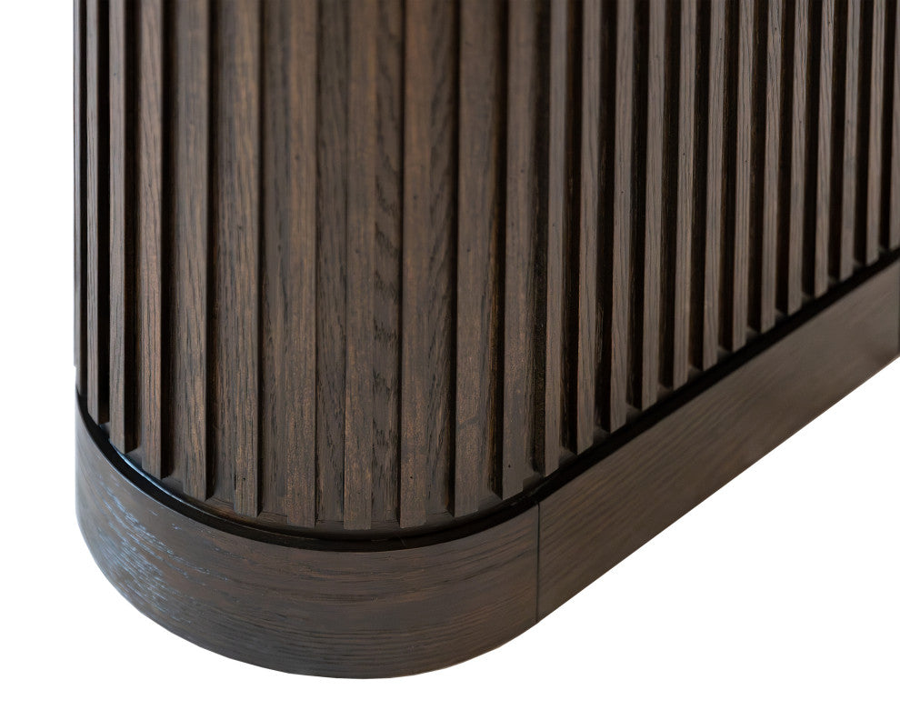 Elevate your dining space with the modern Tulane Dining Collection, meticulously crafted to exude sophistication and warmth. The standout feature of the collection is its unique slat fluted tambour detailing, an element that adds depth and texture, creating an inviting atmosphere for family gatherings and entertaining friends. Each piece in the collection showcases this exquisite craftsmanship, making a bold statement in any dining setting.