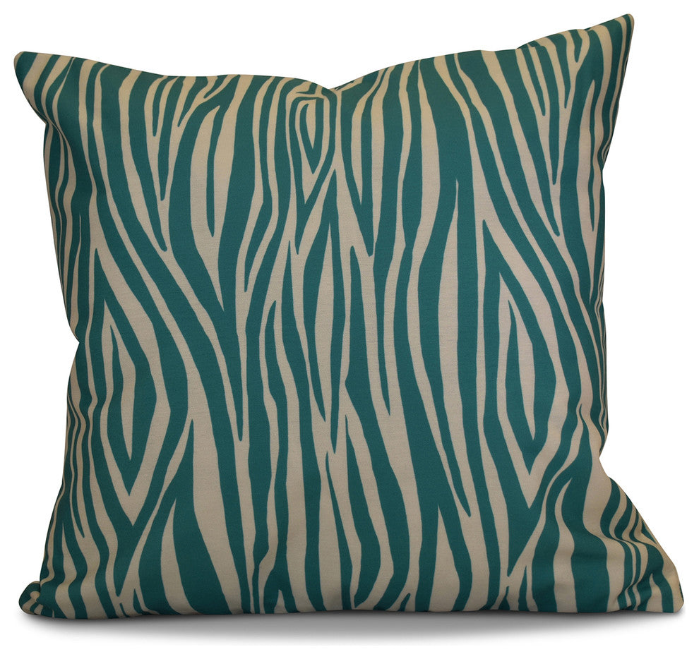 Wood Stripe Geometric Print Outdoor Pillow, Jade, 16"x16"