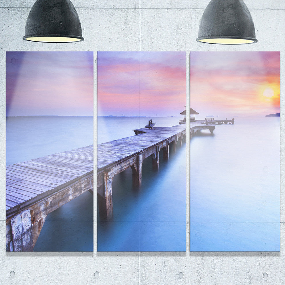 "Wooden Bridge Over Blue Waters" Sea Pier Metal Wall Art, 3 Panels, 36"x28"