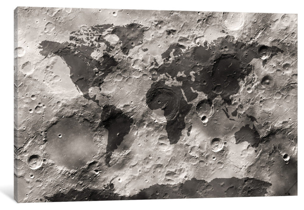 "World Map On The Moon's Surface" Wrapped Canvas Print, 26x18x1.5