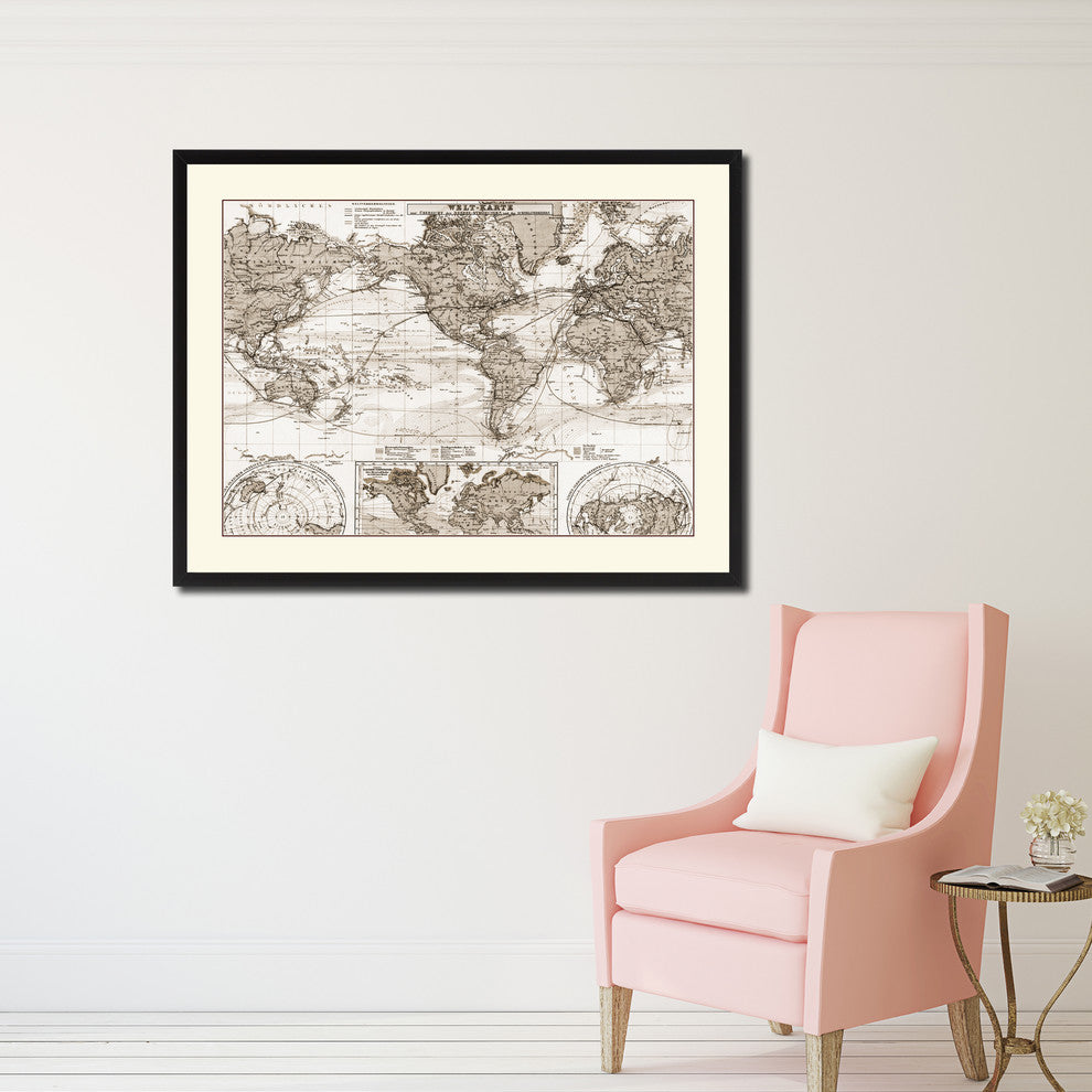 World Ocean Currents Vintage Sepia Map Canvas Print, 28"x37"