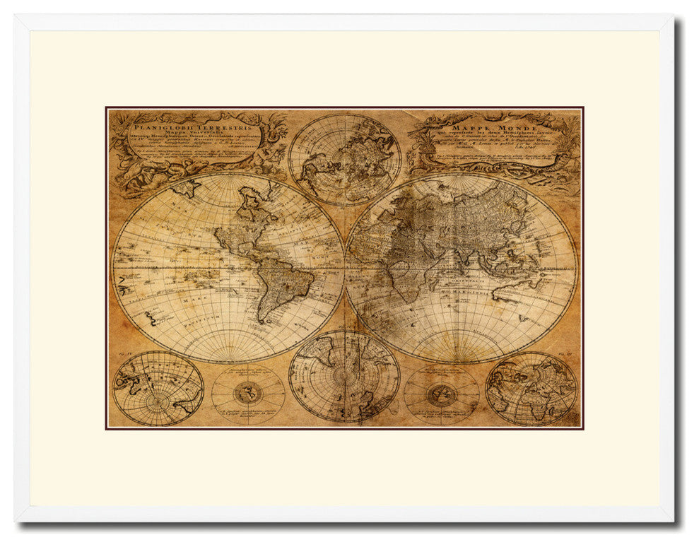 World Old Map Print On Canvas With Picture Frame Art Collection 16" X 21"
