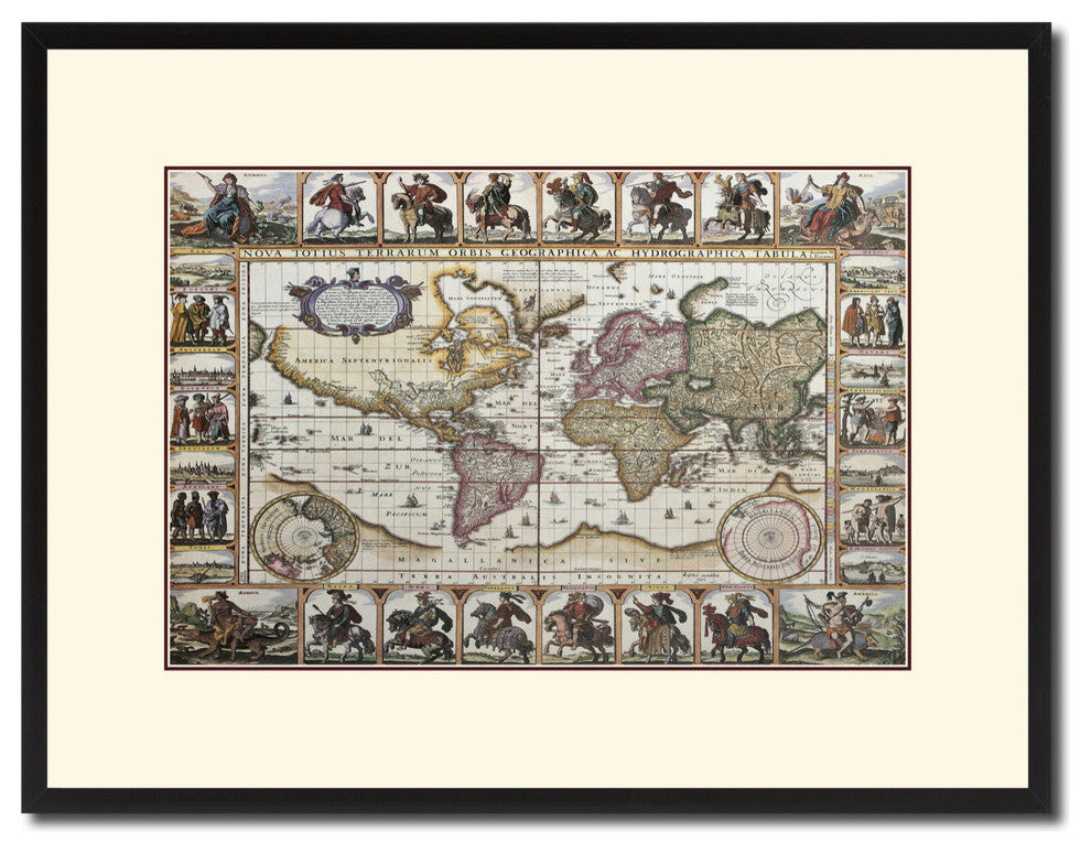 World Vintage Map Print On Canvas With Picture Frame 16" X 21"