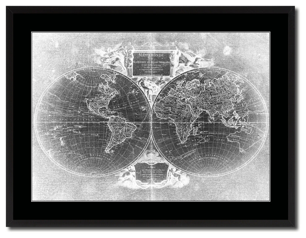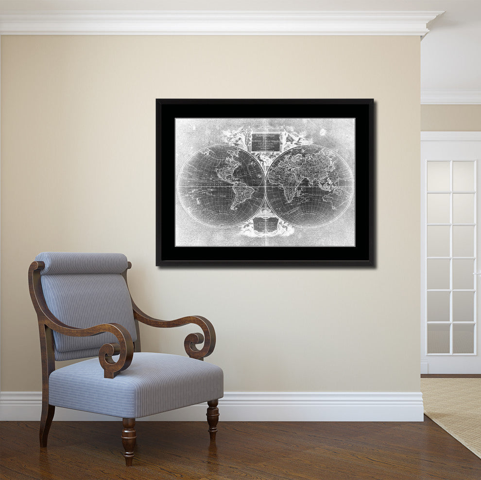 World Vintage Monochrome Map Canvas, 28"x37"