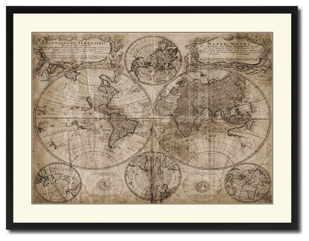 World Vintage Sepia Map Canvas Print, 28"x37"