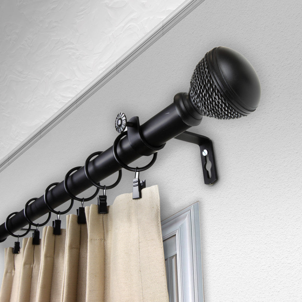 Includes: 1" curtain rod, finials, mounting hardware. Projection: 3.625" Finials Measure: 2.5" x 2.75" x 2.75"