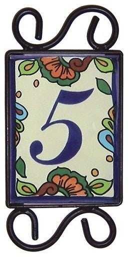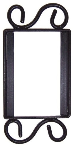 A wrought iron frame made by Mexican craftsmen. It will hold one hacienda tile number. This is a simple handmade artistic frame, but carefully designed to enhance your house tile numbers. It was designed to be hung horizontally.The house numbers frame has wrought-iron-made decorations in the upper and lower parts of the rectangle, they are about 2.2 tall, which adds to the overal frame vertical size (width).House Numbers Frames Installation SuggestionsHorizontal installation: If you want to install your house tile numbers frame horizontally you can use one or two nails. In using one, the frame might not balance horizontally very well, to achieve a better result use two nails, one on each one of the decorations to hold the frame."Hand-hammered and mold-cut to perfectionHandcrafted by Mexico''s Finest ArtisansWe include 1" long brown screws in all of our hammered copper switch plates