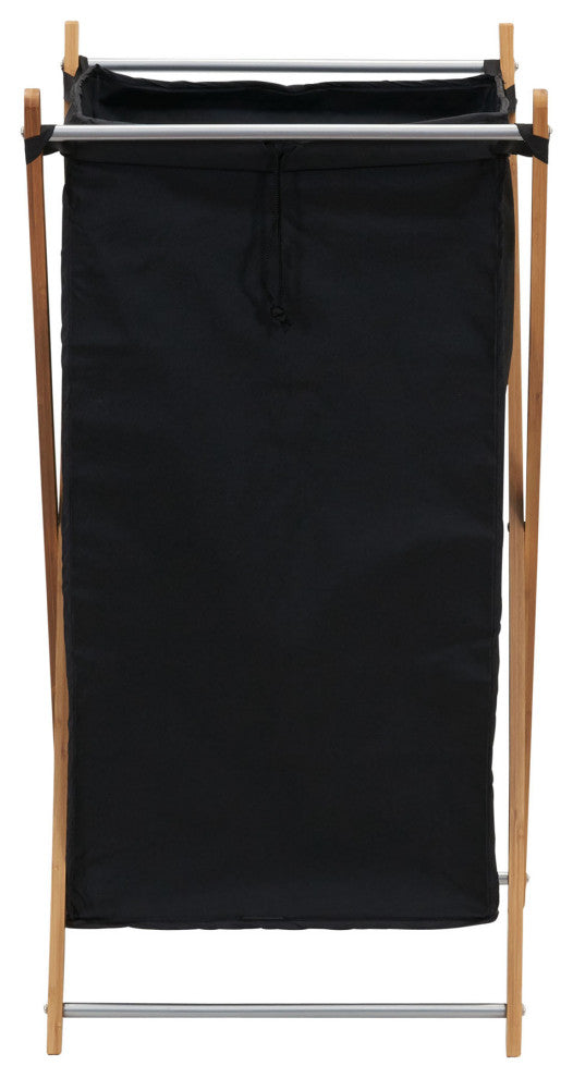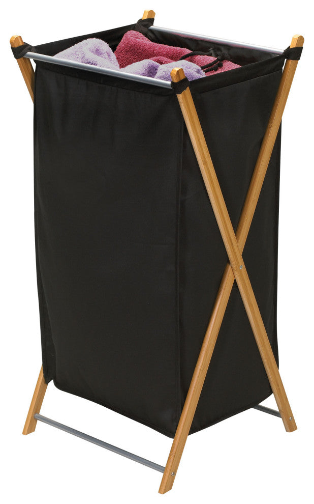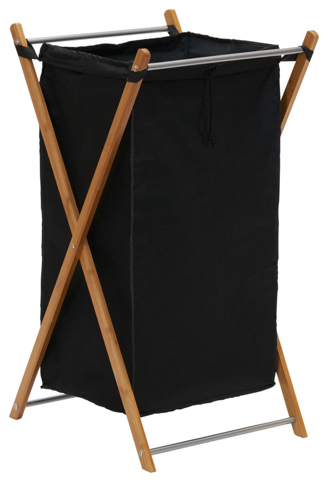 This bamboo hamper is a great example of how there''s no reason why collecting your laundry can''t be glamorous. The hamper''s black liner contrasts beautifully with the natural bamboo frame, creating a chic look that is perfect for any bedroom or laundry room. This hamper is made of durable bamboo, a renewable and eco-friendly material due to its rapid growth cycle and need for little water. Using this bamboo hamper for your laundry day needs is a way to support a more sustainable future. The frame is crossed into an �X" design to provide the best support for up to 2 loads of laundry. Added support bars between the legs also contribute to the hamper''s stability. The black liner is washable and secured onto the frame with simple loops, making removing this liner for washing easy. Once it is finished washing, make sure to let it air dry for the best results. This bag also has a drawstring closure to keep smaller linens from escaping and for ease of carrying. When not in use, the hamper frame can be folded for more compact storage. Perfect for any room of the home, this hamper can be placed in the bedroom or laundry room to hold dirty laundry or even a living room or family room to hold extra throw blankets or pillows. Its neutral yet charming style allows it to fit into any room seamlessly. This hamper is easy to assemble as soon as it arrives. It is especially great for single individuals or smaller living spaces such as dorms, apartments and townhouses.