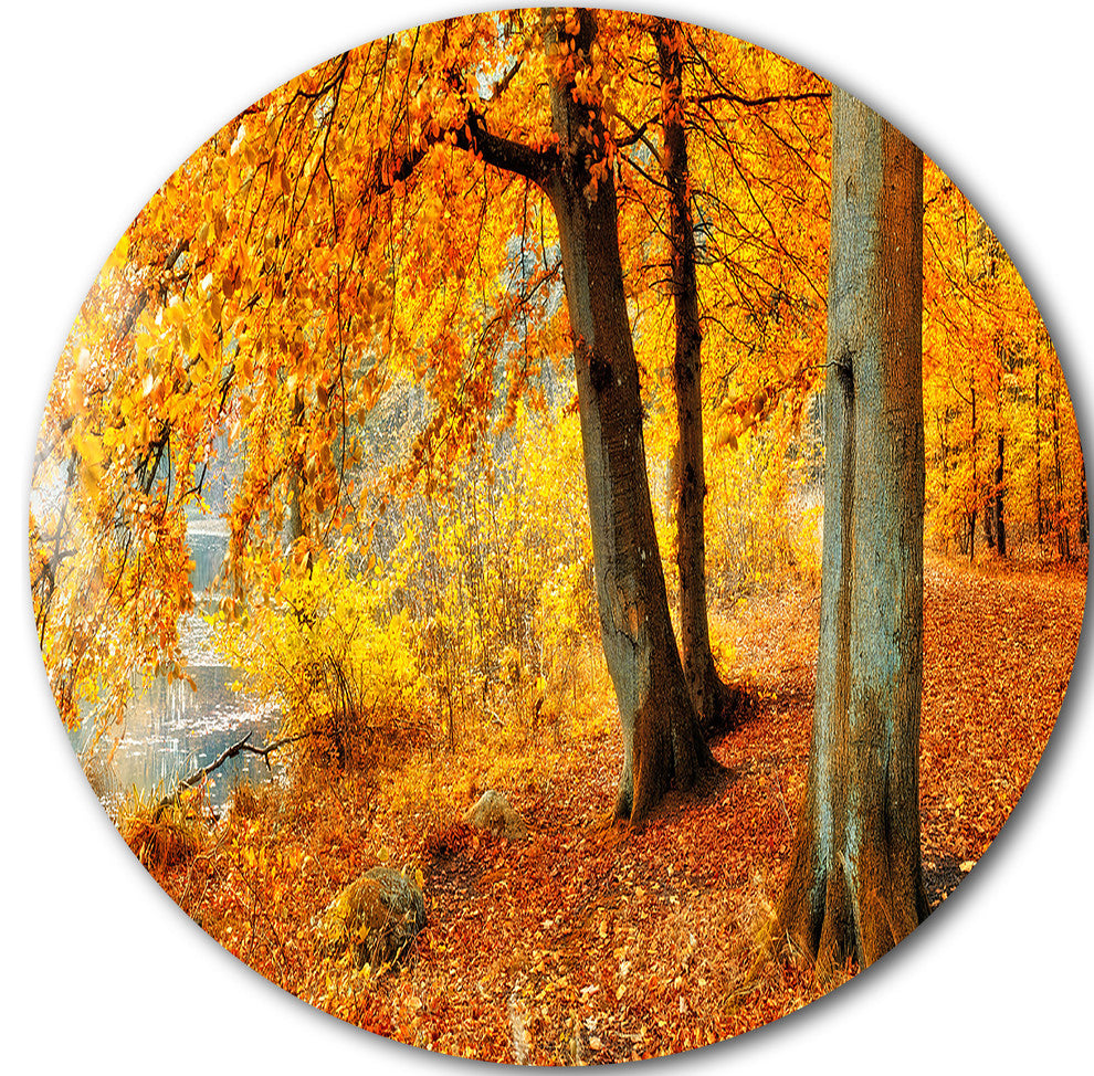 Yellow Forest Of Autumn, Landscape Photo Round Wall Art, 38"